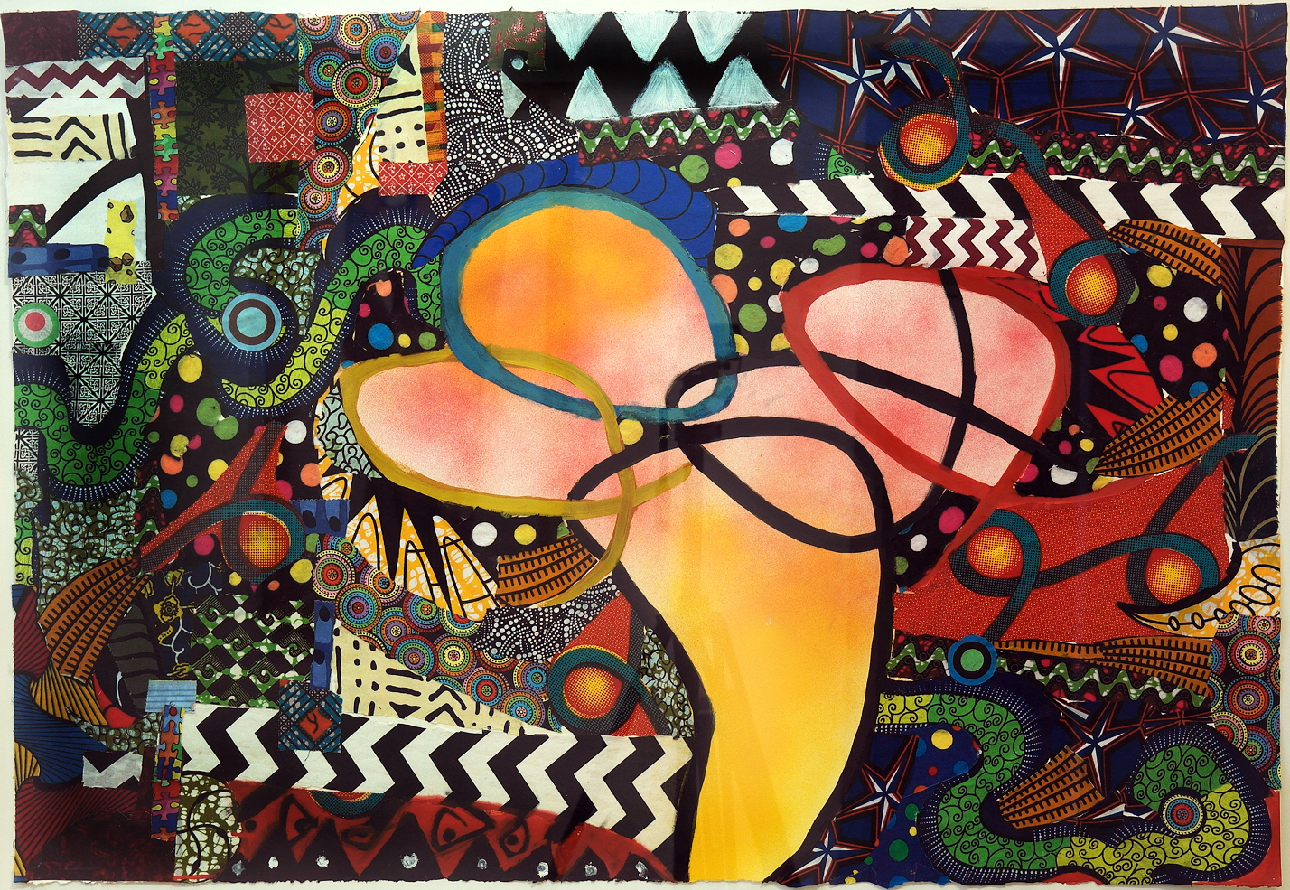 Danny Simmons, As Things Continue to Get More Complicated, fabric and oil on paper