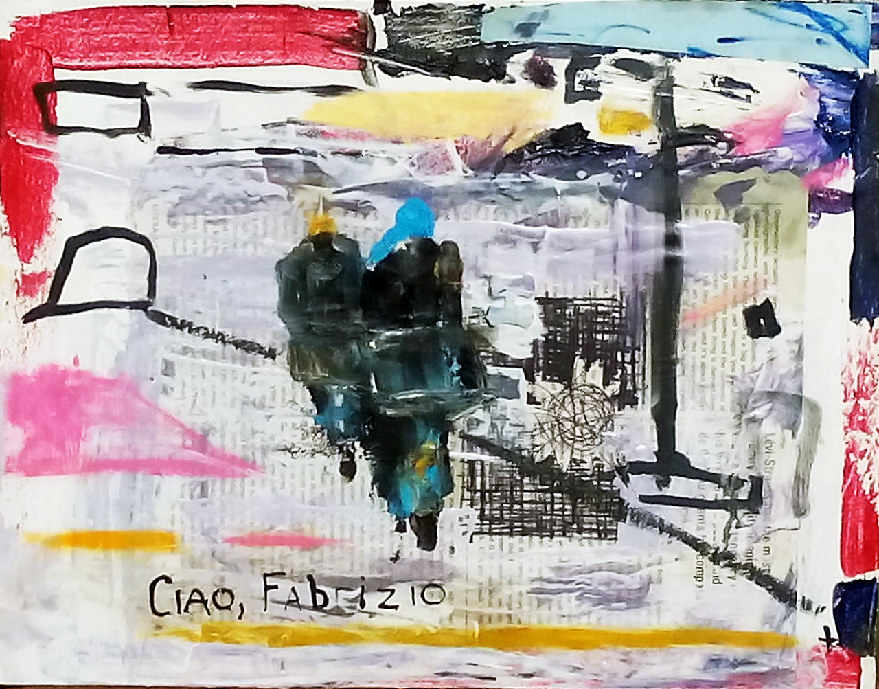 Carl Dinmitri, Ciao Fabrizio, Mixed media on wood click for hi-res