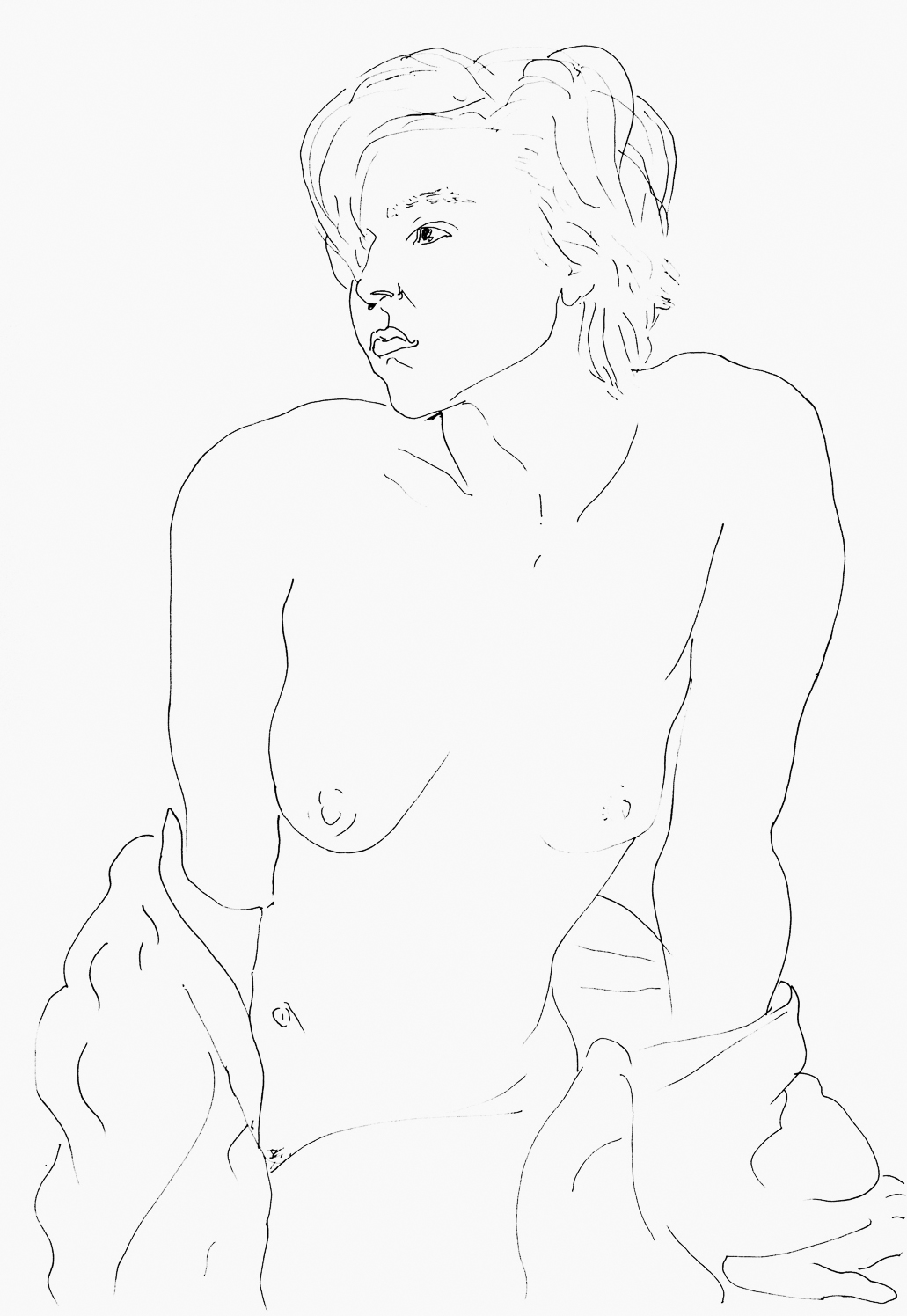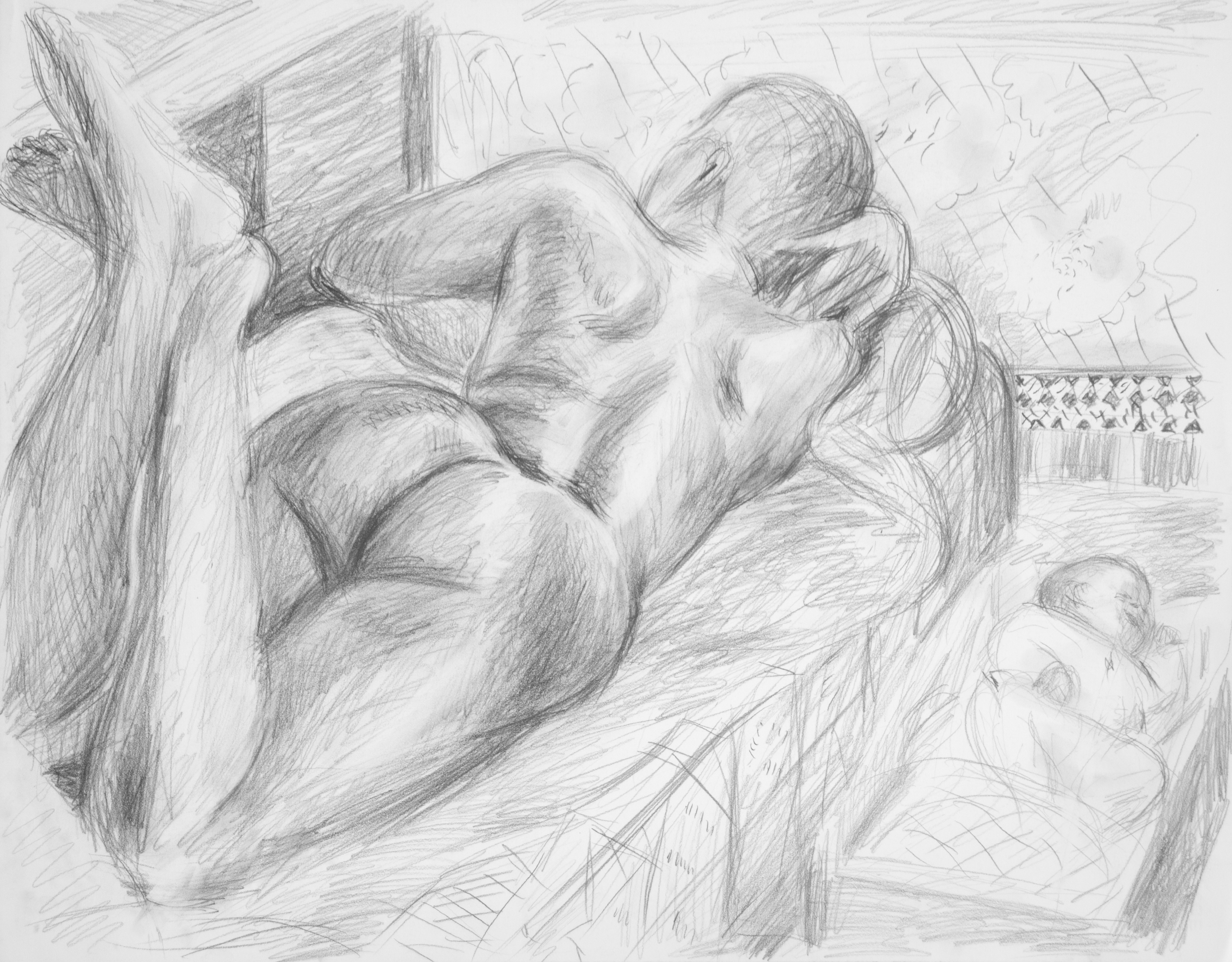 Model with Vase and Pillow, graphite pencil