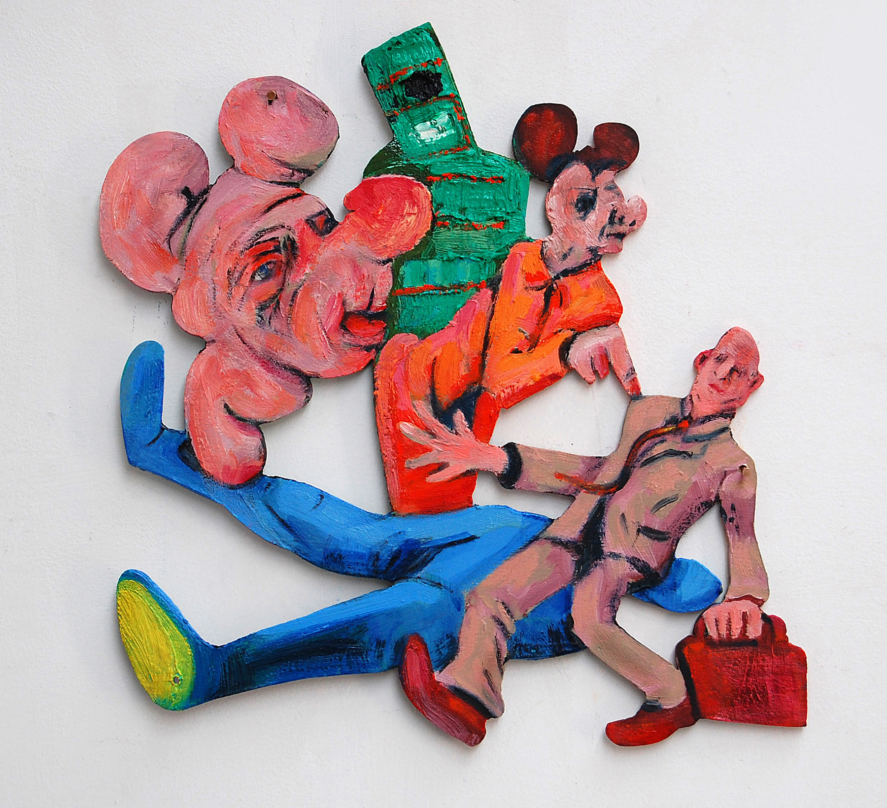 Warwick McLeod, Bandage Boy and His Pig,oil on canvas, 25x15 Hi-Res